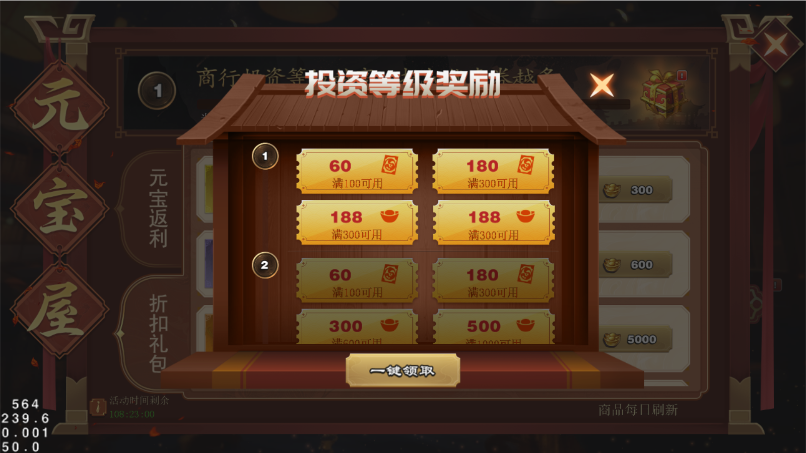 折扣礼包:使用元宝优惠券,就可以用更低的折扣价格购买各种道具~