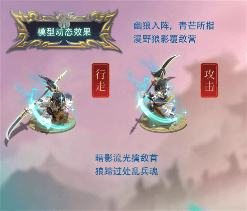 刚侯张辽,青狼奔袭;幽狼随行破阵云,紫袍卷尘慑三军。蹄声如鼓震天地,青芒所指尽披靡。