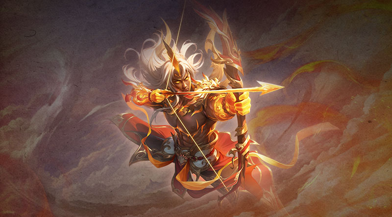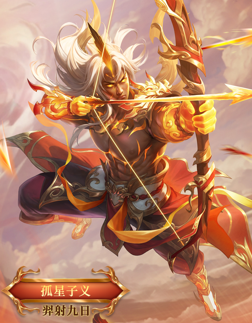 【典藏皮肤】孤星子义,羿射九日;业火红莲脚下生,弓弦响似凤凰鸣。不是天宫焚琴客,乃是救世诛日星。