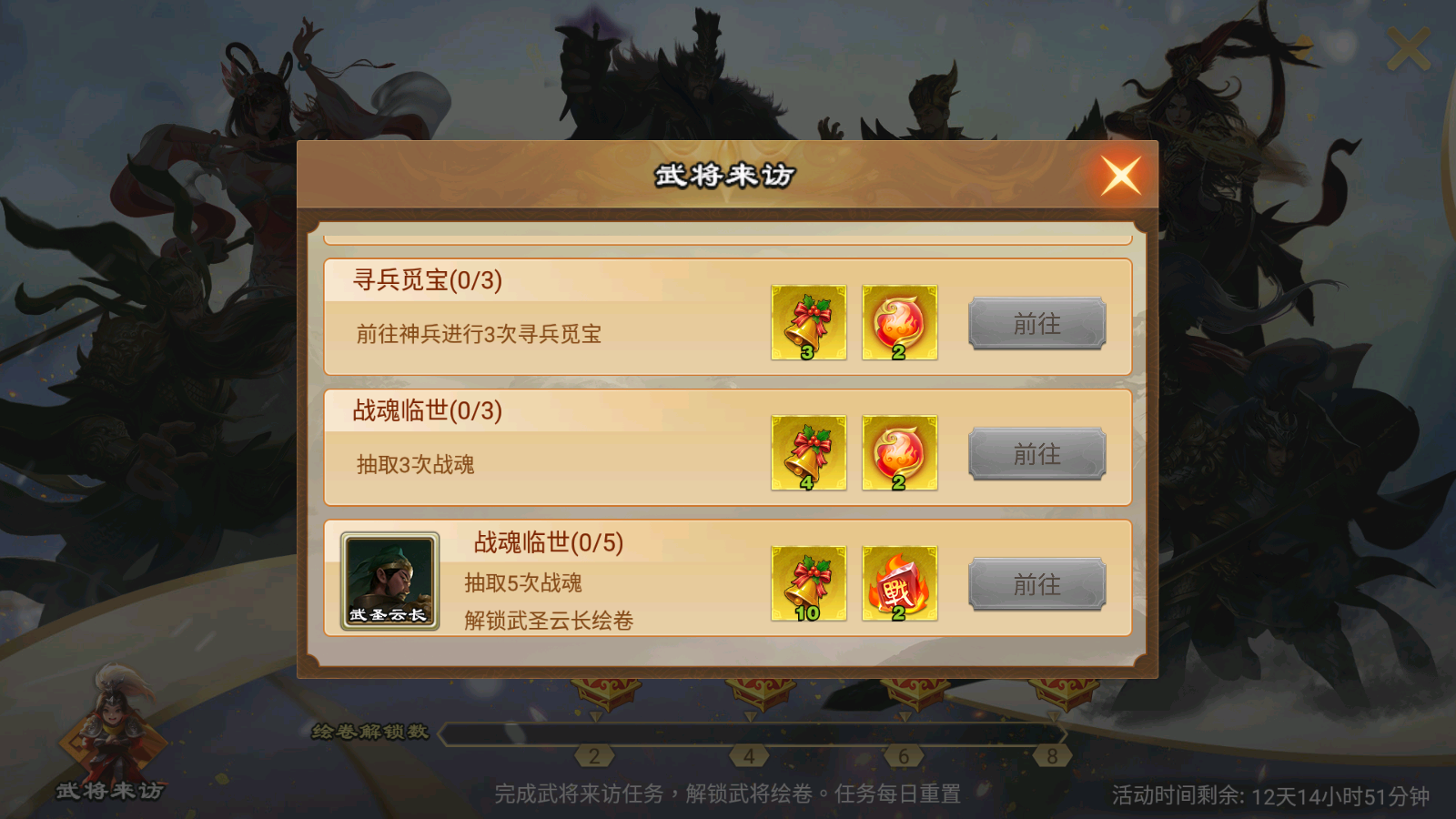 每天完成武将来访任务获取奖励,获得吉签、战魂宝箱等丰厚奖励!