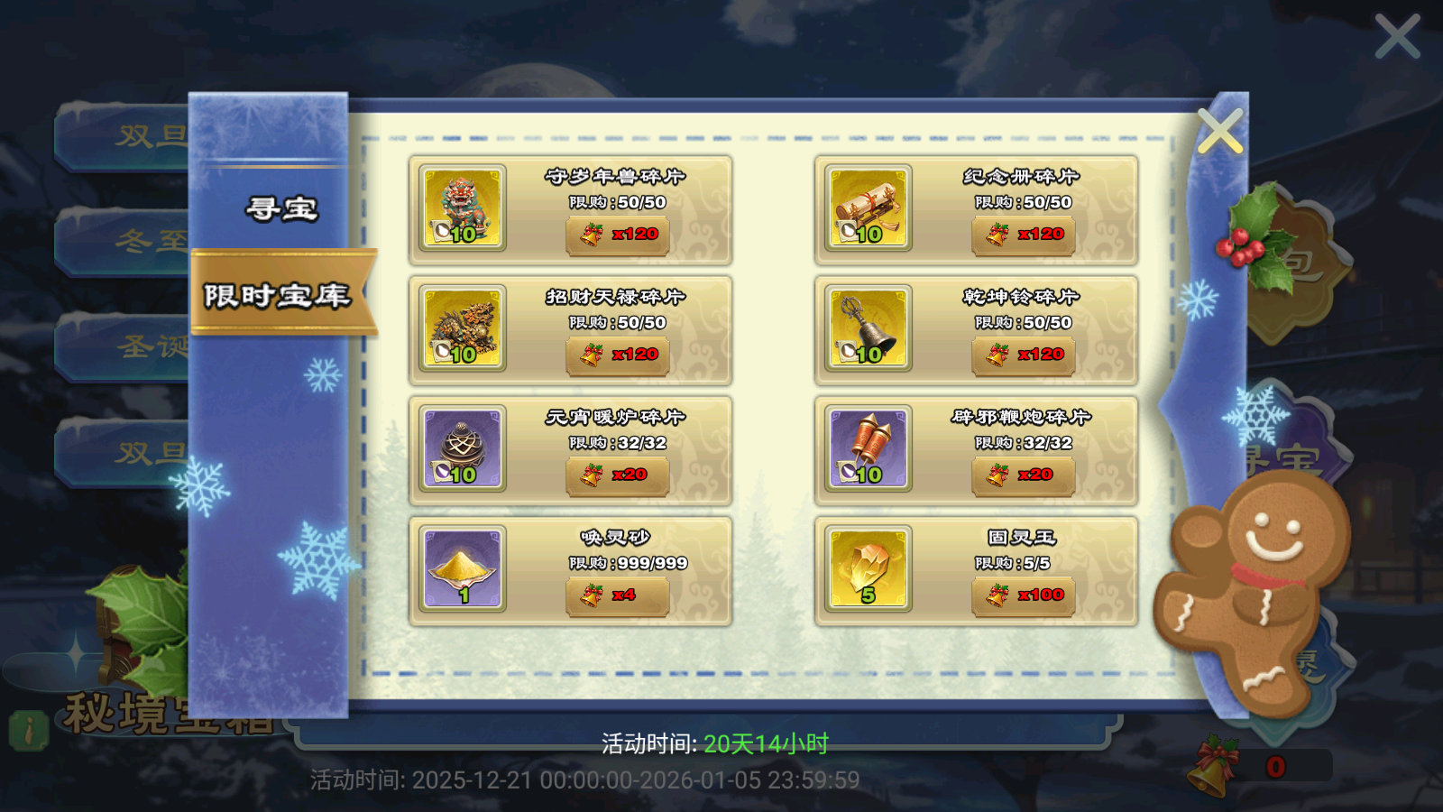 活动期间主公可以按需购买圣诞礼包,包含许愿铃及各种道具~