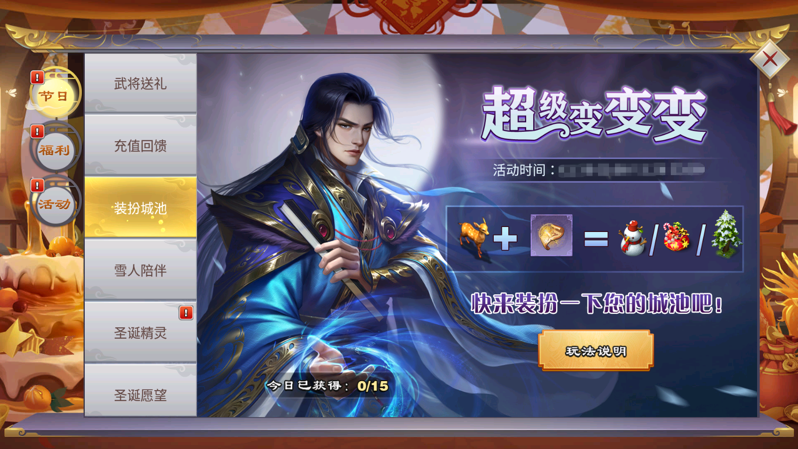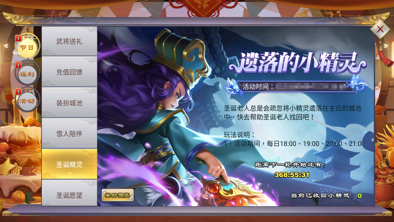 活动期间装满礼物的圣诞礼袜将自动降落到主公城池,大家记得准时上线领取噢~