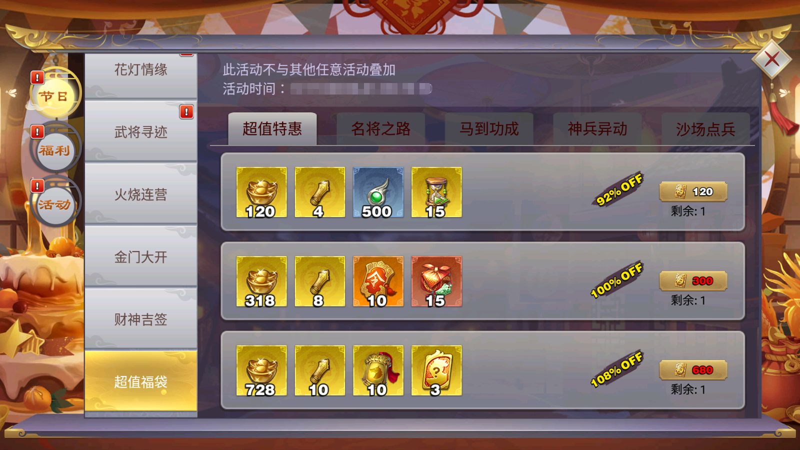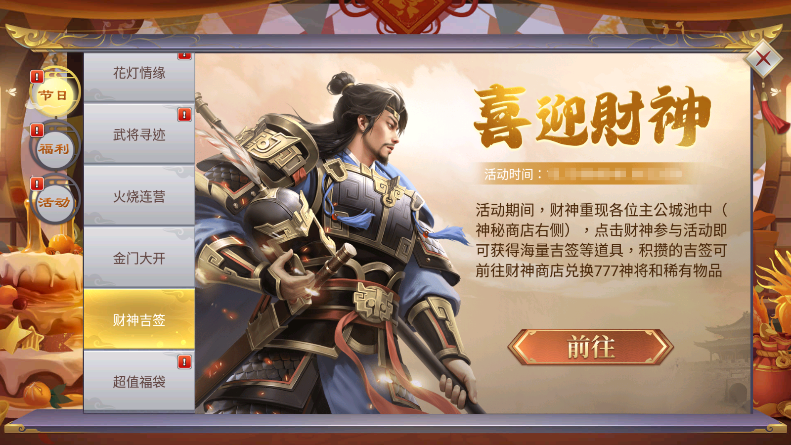 活动期间,每天登录游戏将有神秘武将送上好礼一份~